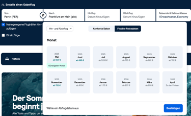 Sei flexibel mit deinem Abflughafen und dem Datum