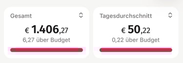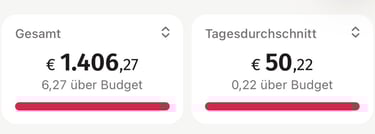 Damit du ein realistisches Gefühl bekommst, haben wir unsere Ausgaben für knapp 4 Wochen getrackt. Unterm Strich lagen wir bei einem Tagesdurchschnitt von rund 50 € pro Tag für zwei Personen – also ungefähr 25 € pro Person.