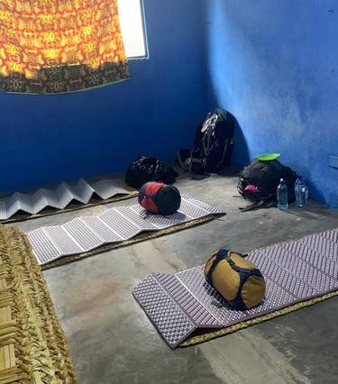 Geschlafen haben wir auf einfachen Matten, alle zusammen in einem Raum. Und am ersten Abend gab es eine echte „Local-Dusche“.